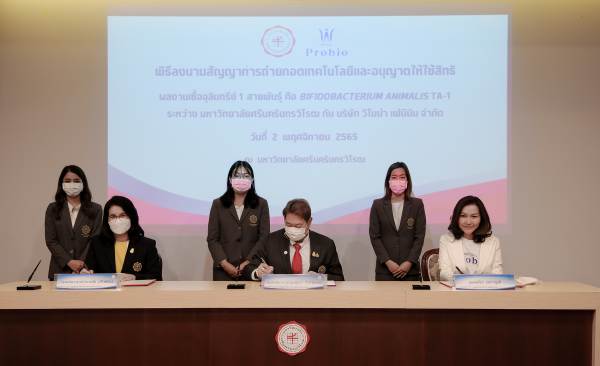 บริษัท วิโนน่า เฟมินิน จำกัด ย้ำจุดยืนผู้นำตลาดผลิตภัณฑ์เพื่อสุขภาพของไทย ผนึกกำลังร่วมกับ สถาบันยุทธศาสตร์ทางปัญญาและวิจัย มหาวิทยาลัยศรีนครินทรวิโรฒ ลงนามสัญญาการถ่ายทอดเทคโนโลยีและอนุญาตให้ใช้สิทธิ ผลงานเชื้อจุลินทรีย์โพรไบโอติกสายพันธุ์ Bifidobacterium animalis TA-1 ซึ่งเป็นผลงานการพัฒนาสายพันธุ์ของ รองศาสตราจาร์ ดร.มาลัย ทวีโชติภัทร์ สังกัดคณะแพทยศาสตร์ และคณะนักวิจัย เพื่อประโยชน์เชิงพาณิชย์ กระตุ้นการใช้จุลินทรีย์โพรไบโอติกไทย ลดการนำเข้าโพรไบโอติกจากต่างประเทศ และเพิ่ม GDP ให้ประเทศไทยได้ดุลการค้าจากโพรไบโอติกสู่การต่อยอดผลิตภัณฑ์เสริมอาหารที่ช่วยสร้างสมดุลสุขภาพของคนไทย และลดภาระค่าใช้จ่ายการรักษาพยาบาลในอนาคต