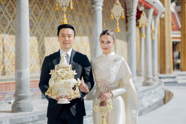 “โน๊ต วิเศษ” จูงมือ “แพทริเซีย” เข้ารับพระราชทานน้ำพระพุทธมนต์