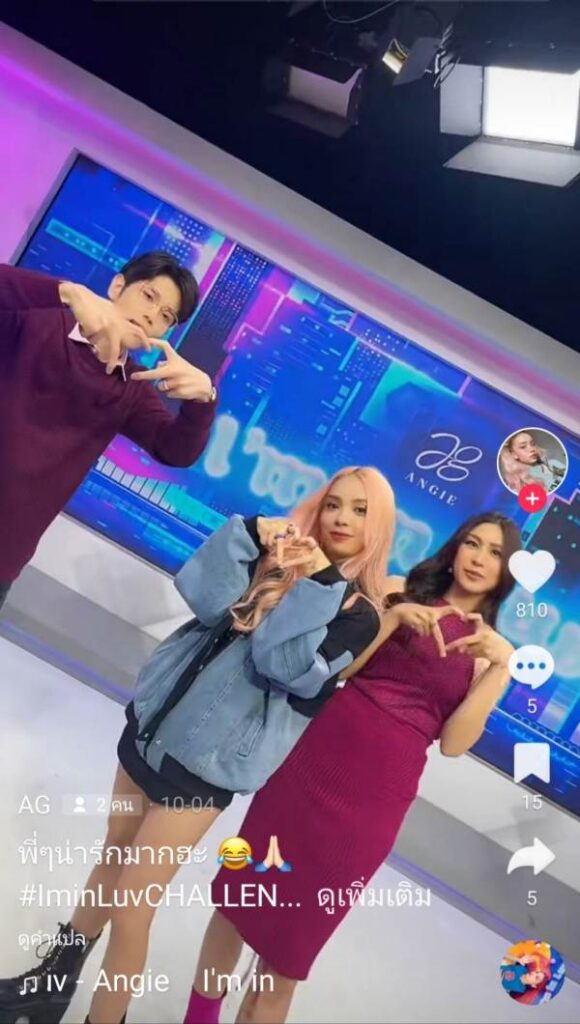 แก้มบานกันไปเลยสิคะ เมื่อรู้ว่าเพลง “I’m in Luv” ของตัวเอง มีคนดังร่วมชาเลนจ์และเต้นตามกันเต็มฟีด ไม่ว่าจะเป็นรุ่นพี่จากรายการ เดอะ เลดี้ ผู้หญิงแถวหน้า (The Ladies) แคท-แคทรียา อิงลิช, น้ำหวาน ซาซ่า-พิมรา เจริญภักดี และน้ำ-ชลนที อักษรสิงห์ชัย,