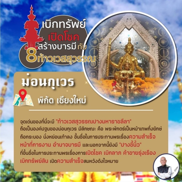 “ท้าวเวสสุวรรณ” ถูกขนานนามในเรื่องของการขอพรเรียกเงิน เรียกทรัพย์ ยิ่งในช่วงนี้จะเห็นได้ว่าหลาย ๆ คนเดินทางเพื่อไปขอพรเรื่องโชคลาภ และเงินทองกับท้าวเวสสุวรรณ กันตามที่ต่าง ๆ “ซินแสเป็นหนึ่ง” เลยได้รวบรวมเอา 8 ท้าวเวสสุวรรณ ที่หลายเสียงบอกว่าขลังสุด ๆ มารวมไว้ให้ไปตามรอยกัน