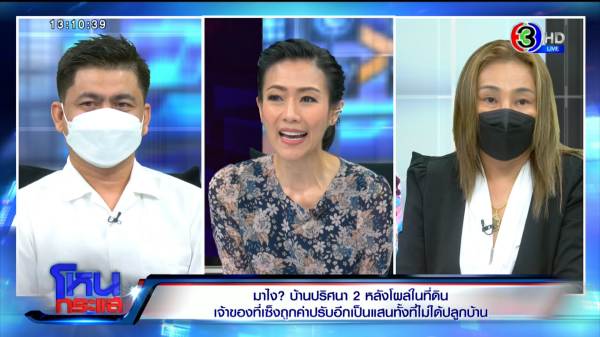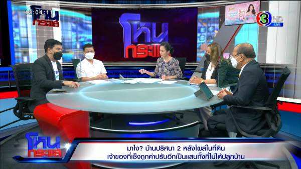 รายการโหนกระแสวันที่ 21 พ.ย. 65 “หมวย อริสรา กำธรเจริญ” ดำเนินรายการแทน “หนุ่ม กรรชัย กำเนิดพลอย” ผลิตในนามบริษัท ดีคืนดีวัน จำกัด ออกอากาศทุกวันจันทร์-ศุกร์ เวลา 12.35 น. ทางช่อง 3 กดเลข 33 ได้สัมภาษณ์ ไพรัตน์ เจ้าของที่ดิน, นิด คนไปสร้างบ้านสองหลัง , เอกภพ เหลืองประเสริฐ เพจสายไหมต้องรอด และ ปรเมศวร์ อินทรชุมนุม อัยการอาวุโส สำนักงานสอบสวน