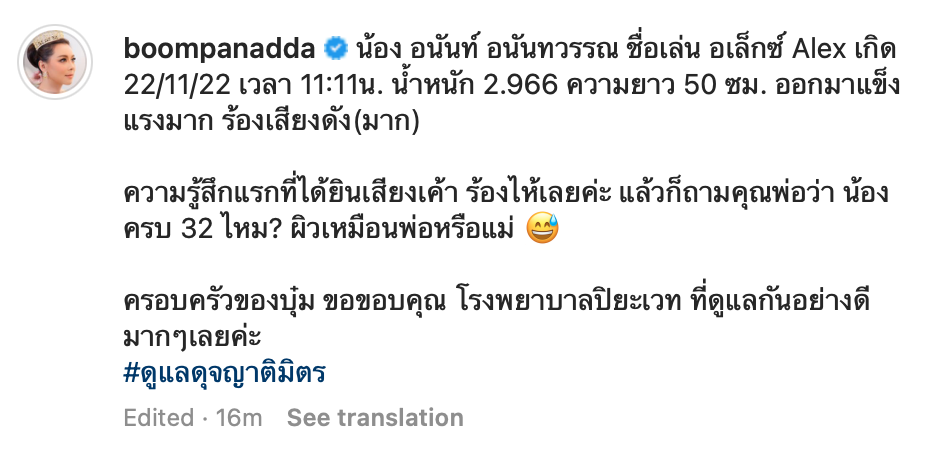 เป็นอีกหนึ่งเรื่องราวดี ๆ ที่เกิดขึ้น และสิ้นสุดการรอคอยสำหรับสมาชิกใหม่ตัวน้อย ที่เข้ามาเป็นส่วนหนึ่งในชีวิตของ คุณบุ๋ม ปนัดดา วงศ์ผู้ดี