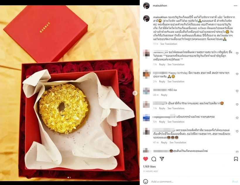 ล่าสุด สาวใหม่ โพสต์ของขวัญวันเกิดที่สามีมอบให้ พร้อมข้อความว่า “ของขวัญวันเกิดแม่ปีนี้ แม่ได้โบนัทจากสามี เอ้ย! โดนัทจากสามี😜 (ส่วนโบนัท แม่ก็ได้นะ รูปถัดไป🙏ขอบคุณสามี สำหรับโบนัทค่ะ) พรุ่งนี้แม่หายปวดหัวจะกินให้เรียบเลย เซอร์ไพรสกว่าของขวัญวันเกิด ก็สามีติดโควิดในวันเกิดแม่นี่แหละ งงในงง ผิดแผนไปหมดวันนี้อดเป่าเค้กด้วยกันเลย แต่เมื่อคืนก็เหมือนเป่าแล้วแหละหน้าประตูไง🤗 วันเกิดก็คือวันธรรมดาวันนึง แม่คิดแบบนี้เสมอ ปีนี้เรียบง่าย สมใจแม่มากๆ แม่ไม่ชอบจัดงานเลี้ยงอะไรใหญ่ๆวุ่นๆคนเยอะๆ นี่แหละใช่เลย🙏”