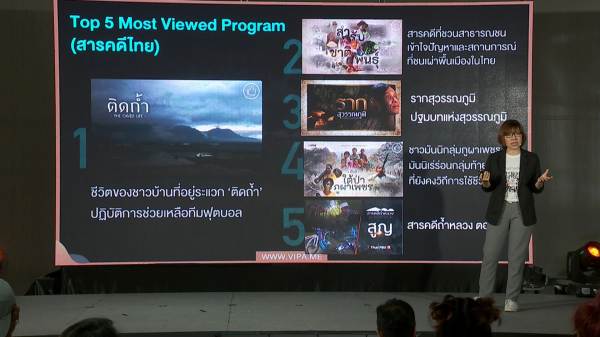 ขณะที่ คุณกนกพร ประสิทธิ์ผล ผู้อำนวยการสำนักสื่อดิจิทัล ส.ส.ท. ระบุถึงแนวทางการพัฒนาแพลตฟอร์ม VIPA ว่า จากการเปิดตัวอย่างเป็นทางการเมื่อปลายปี 2564 ที่ผ่านมากระทั่งถึงวันนี้ VIPA มีการเติบโตขึ้นในทุกส่วน เมื่อเทียบกับปี 2564 ปัจจุบันถึงเดือนพฤศจิกายน 2565 มียอดดาวน์โหลดแอปพลิเคชันเพิ่มขึ้นกว่า 163% เช่นเดียวกับการรับชมผ่านเว็บไซต์เพิ่มขึ้น 580% รวมถึงการติดตามในทุกโซเชียลมีเดียเติบโตขึ้นทุกช่องทางเช่นกัน โดย VIPA ให้บริการใน 7 กลุ่มเนื้อหา ประกอบด้วย กลุ่มละครและซีรีส์, กลุ่มรายการเด็กและครอบครัว, กลุ่มรายการอาหารและท่องเที่ยว, กลุ่มวาไรตี้และไลฟ์สไตล์, กลุ่มการศึกษา, กลุ่มสาระข่าวและความรู้ และกลุ่มสารคดีไทยและต่างประเทศ โดยเฉพาะกลุ่มสารคดีมีจำนวนมากที่สุดใน VIPA ถึง 27% มากถึง 102 เรื่อง 1,126 ตอน ซึ่ง VIPA ได้นำเสนอมาอย่างต่อเนื่อง ขณะเดียวกันยังพบว่าสารคดีไทย “ติดถ้ำ” ที่ได้ถ่ายทอดเรื่องราวปฏิบัติการช่วยเหลือทีมฟุตบอลหมูป่าติดถ้ำหลวงปี 2561 เป็นสารคดียอดนิยมในการรับชมผ่านแพลตฟอร์ม VIPA