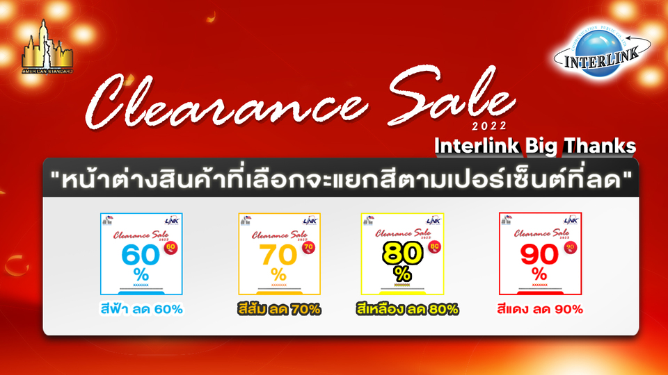 INTERLINK กลับมาแล้ว ! 1 ปี มีหนึ่งครั้ง มหกรรมลดราคาสินค้าแบบล้างสต๊อก จัดหนัก จัดเต็ม ลดกระหน่ำส่งท้ายปีสูงสุดถึง 90% ในงาน “Clearance Sales 2022 !! INTERLINK Big thanks” ซื้อง่าย ได้ของชัวร์ จัดโดยบริษัท อินเตอร์ลิ้งค์ คอมมิวนิเคชั่น จำกัด (มหาชน) และเป็นปีแรกของการจัดงานใหญ่