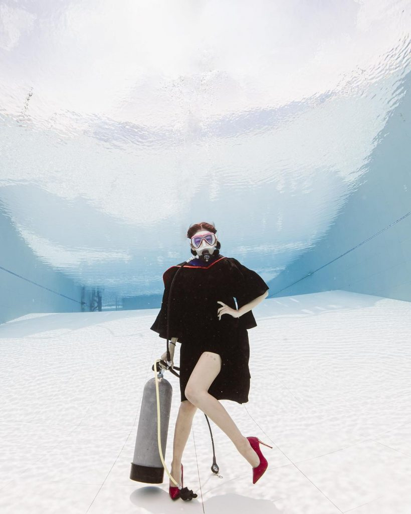 จบแบบสับ ๆ “มะเหมี่ยว พรชดา” ใส่ชุดครุยลงไปถ่ายใต้น้ำ