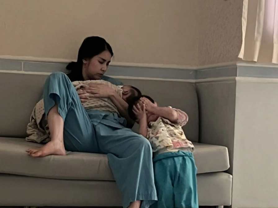 ต่อมาโพสต์อีกว่า “1 คนอุ้ม อีก1คนเอาขาหนีบไว้ ทุกคนต้องได้รับความรักเท่าๆกัน อุ้มอีกคน แต่อีกคนก็ต้องได้รับความรัก แม่ไม่ได้เอาแขนอุ้มคนโต แต่ก็ต้อง เอาขาโอบอุ้มคนโตไว้ก็ยังดี ให้เขารู้สึกอบอุ่นหัวใจที่อยู่ในร่างกายแม่ ใกล้ๆแม่”