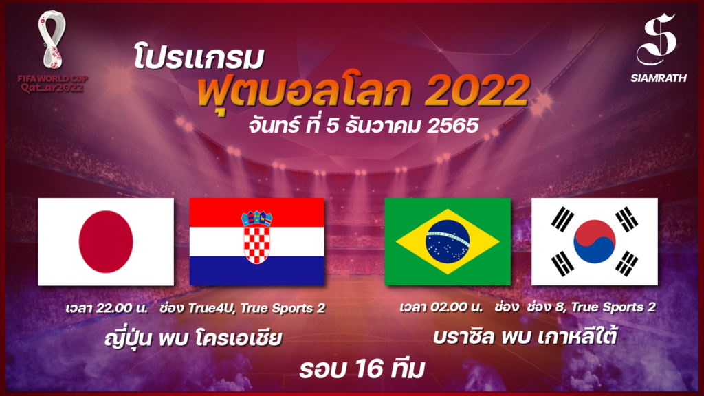 | 5 ธันวาคม 2565 | ญี่ปุ่น – โครเอเชีย | 22.00 น. | True4U, True Sports 2 |
