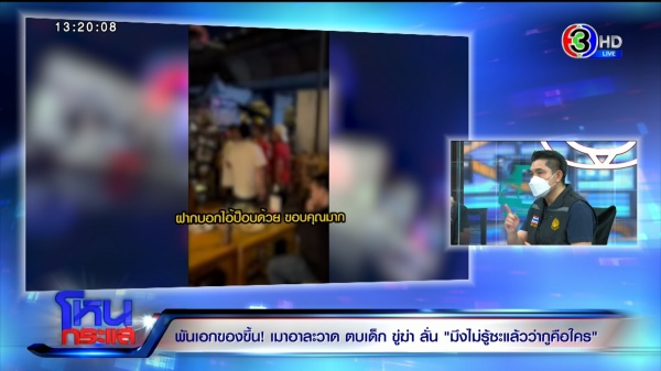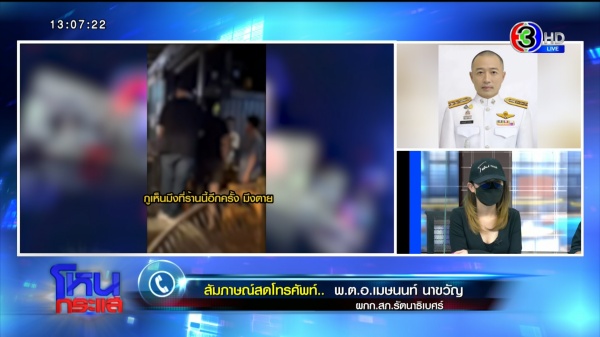 พ.ต.อ.เมษนนท์ : ตอนนี้เราทราบชื่อและเห็นหน้าแล้วจากบัตรประชาชน คงต้องรอให้ผู้เสียหายมายืนยันอีกทีว่าคนดังกล่าวใช่ผู่ก่อเหตุหรือไม่ ในส่วนที่แจ้งว่าเป็นทหาร เราจะทำการตรวจสอบไปทางหน่วยทหาร ว่าบุคคลดังกล่าวเป็นทหารจริงหรือไม่ต้องรอเอกสารยืนยันอีกทีครับ ในเบื้องต้นทราบว่าเป็นทหาร แต่ต้องรอหลักฐานและเอกสารให้ชัดเจนอีกครั้ง