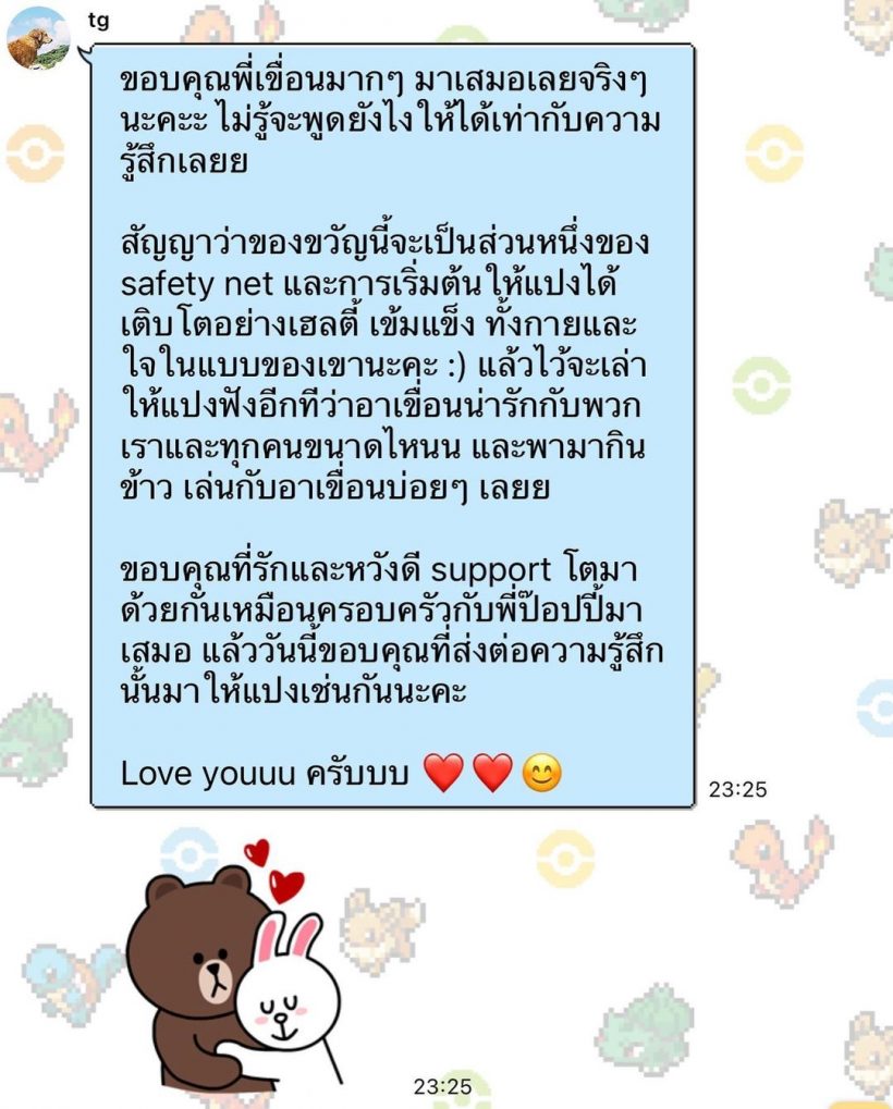 ขอบคุณสำหรับดอกไม้และกำลังใจ ในวันที่หนูยืนไม่ค่อยไหว ขอบคุณสำหรับทุกครั้งที่หนูไม่กล้าพักพิงใครเเล้วพี่ขับรถมานั่งด้วยถึงตี4ในทุกๆครั้ง พี่ป๊อปปี้เป็นคนเดียวในโลกที่หนูให้เห็นมุมเหล่านี้ของเขื่อน เป็นมุมที่เขื่อนไม่ต้องเข้มแข็งตลอดเวลา และรู้สึกปลอดภัยที่จะอ่อนเเอ และมันมีความหมายมากจริงๆ