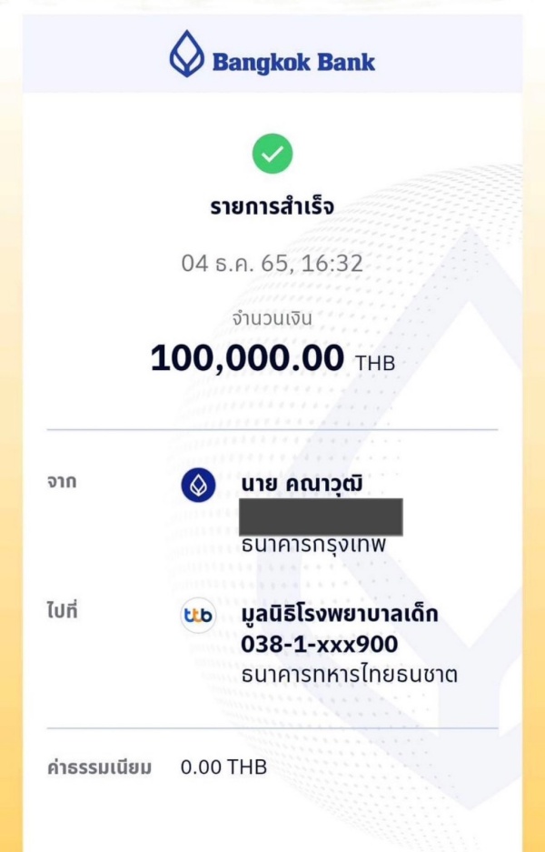 ก่อนที่ คุณแม่นงนุช ไตรพิพัฒนพงษ์ เป็นตัวแทนเดินทางไปเลี้ยงอาหาร ไอศกรีม และบริจาคเงินอีกจำนวนหนึ่งให้กับน้อง ๆ บ้านราชาวดีชาย อำเภอปากเกร็ด จังหวัดนนทบุรี ในโอกาสพิเศษครั้งนี้อีกด้วย
