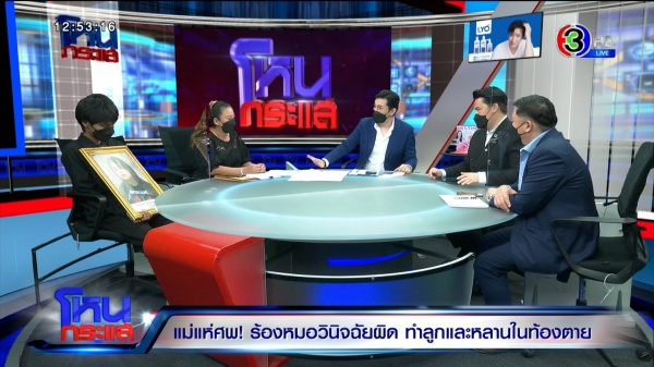 รายการโหนกระแสวันที่ 8 ธ.ค. 65 ดำเนินรายการโดย “หนุ่ม กรรชัย กำเนิดพลอย” ผลิตในนามบริษัท ดีคืนดีวัน จำกัด ออกอากาศทุกวันจันทร์-ศุกร์ เวลา 12.35 น. ทางช่อง 3 กดเลข 33 ได้สัมภาษณ์ แม่สายม่าน แม่ผู้เสียชีวิต, พงศ์ สามีผู้เสียชีวิต มาพร้อม กัน จอมพลัง และ ดร.มนต์ชัย จงไกรรัตนกุล หรือ ทนายแก้ว รองประธานคณะกรรมการเผยแพร่กฎหมาย สภาทนายความ