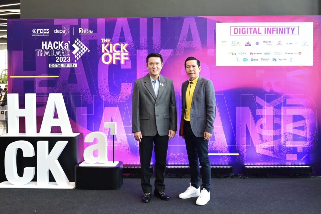 ในพิธีเปิดกิจกรรม HACKaTHAILAND 2023 #TheKickOff ภายใต้แนวคิด DIGITAL INFINITY: ดิจิทัลไม่มีที่สิ้นสุด โดยมี ผศ.ดร.ณัฐพล นิมมานพัชรินทร์ ผู้อำนวยการใหญ่ สำนักงานส่งเสริมเศรษฐกิจดิจิทัล หรือ ดีป้า ผู้แทนจากสถานทูต ผู้บริหารและผู้แทนจากเครือข่ายพันธมิตรภาครัฐ ภาคเอกชน และสถาบันการศึกษา ร่วมในพิธีโดยพร้อมเพรียง ณ ชั้น 9 SIAMSCAPE