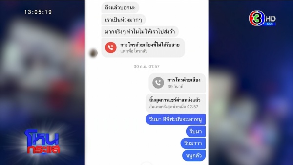 พลอย : หนูก็ทักหาพี่อีกคนนึง เขาก็วิดีโอคอลมา บอกว่าไม่ต้องวางนะ หนูก็รีบหาของ ๆ หนู