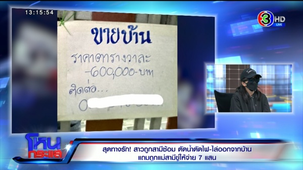 กรณีสาวคนหนึ่ง มีลูก 2 คน ร้องขอความเป็นธรรมจากสื่อ ถูกสามีทำร้ายร่างกาย ทนอยู่ในบ้านกับสามี จนวันหนึ่ง อยู่ดีๆ ครอบครัวสามีออกจากบ้าน ทิ้งให้อยู่กับลูก แล้วตัดน้ำตัดไฟ ต้องอุ้มลูกหนีออกมา สุดท้ายถูกฝั่งแม่สามีเรียกเงินค่าอยู่อาศัย 7 แสนบาท