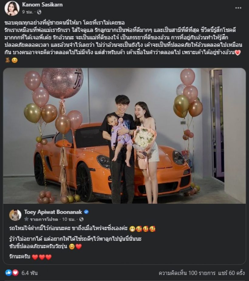 ล่าสุด ครูเต้ย ได้ทุ่มเงินซื้อรถสปอร์ตคาร์ให้ภรรยา พร้อมโพสต์ภาพและแคปชั่นว่า “รถใหม่ใจ๋ฝากมี้ไว้ก่อนนะคะ ขาถึงเมื่อไหร่จะซิ่งเองค่ะ รู้ว่าไม่อยากได้ แต่อยากให้ได้ใช้รถดี ๆ ไว้พาลูกไปนู้นนี่นั่นนะ ขับขี่ปลอดภัยนะครับวัยรุ่น รักนะครับ”
