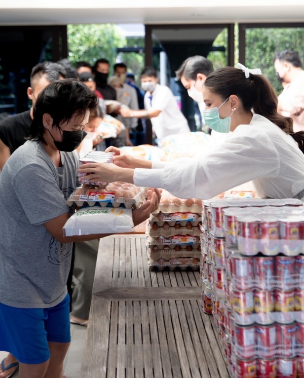 คู่รักสายบุญ “ศรีริต้า-กรณ์” แจกข้าวสารอาหารแห้งให้ชุมชนย่านรามคำแหง