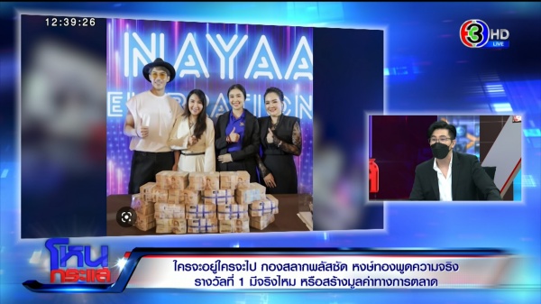 วี : ทางเราก็ไม่ทราบเหมือนกัน เราต้องเรียนแจ้งอย่างนี้ ว่าคนที่ถูกรางวัลคือคุณเพชรพันปี ทางเราได้มีการนำเงินที่ถูกรางวัลไปให้คุณเพชรพันปี แต่ส่วนหลังจากนั้นน่าจะเป็นคุณเพชรพันปีแล้วค่ะ