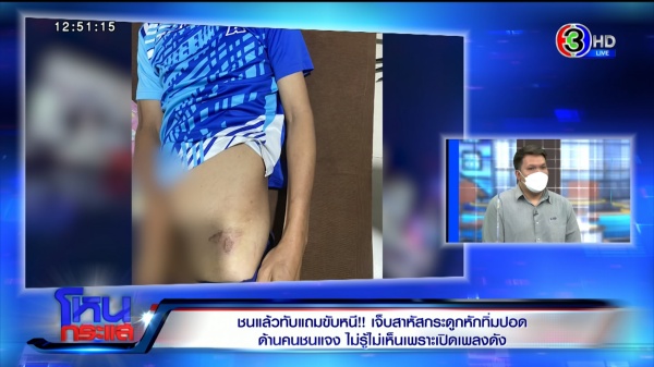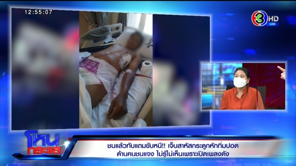 คนขับแท็กซี่ คือคนที่นั่งซ้อน เขาขับแท็กซี่ไม่ได้เลย ออกไปทำมาหากินไม่ได้ ส่วนอีกคน ขี่มอเตอร์ไซค์วินรับจ้าง เอาเงินส่งเสียให้ครอบครัว วันนี้หมอบอกว่าไม่น่ากลับมาเหมือนเดิม เพราะเขาหักไปครึ่งตัว ผ่าตั้งแต่ยอดท้องลงมา หมอบอกว่ายังไงอีก?