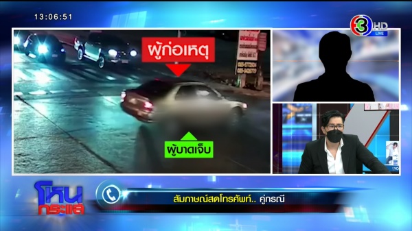 ไม่หน่อย เพราะเป็นแยกไฟแดง คุณฝ่าไฟแดง คุณชนแล้วบอกว่าไม่เห็น สามชนแล้วไม่ช่วย สี่คุณหนี ห้าคุณบอกว่าไปตั้งหลัก คุณไม่เยียวยาตั้งแต่แรก จนกระทั่งรู้ว่ารายการติดต่อไปและต้องออกวันนี้?