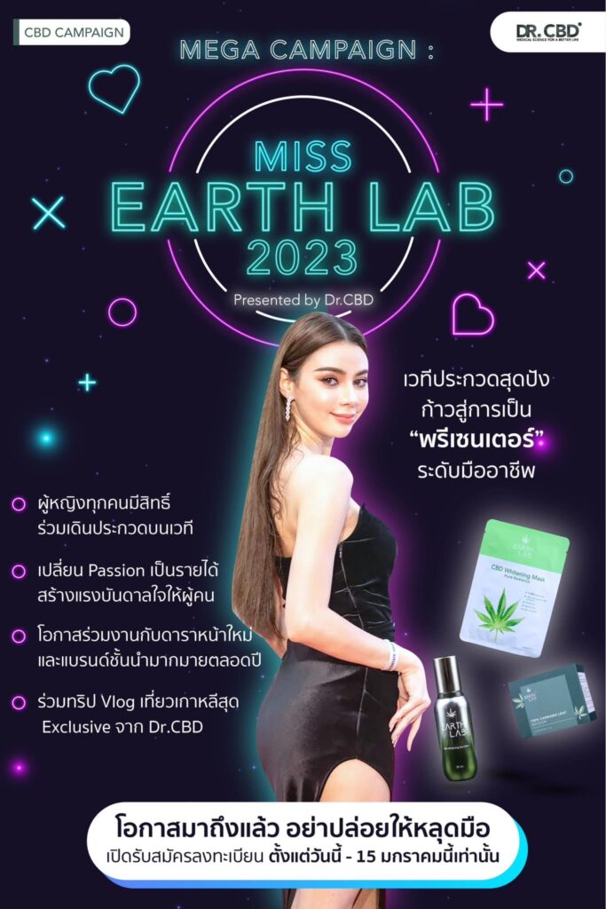 โอกาสก้าวสู่การเป็น “พรีเซนเตอร์” ระดับมืออาชีพ!! เปิดรับสมัครผู้เข้าประกวดสาวงาม ประชันเวที Miss Earthlab 2023 Presented by Dr.CBD