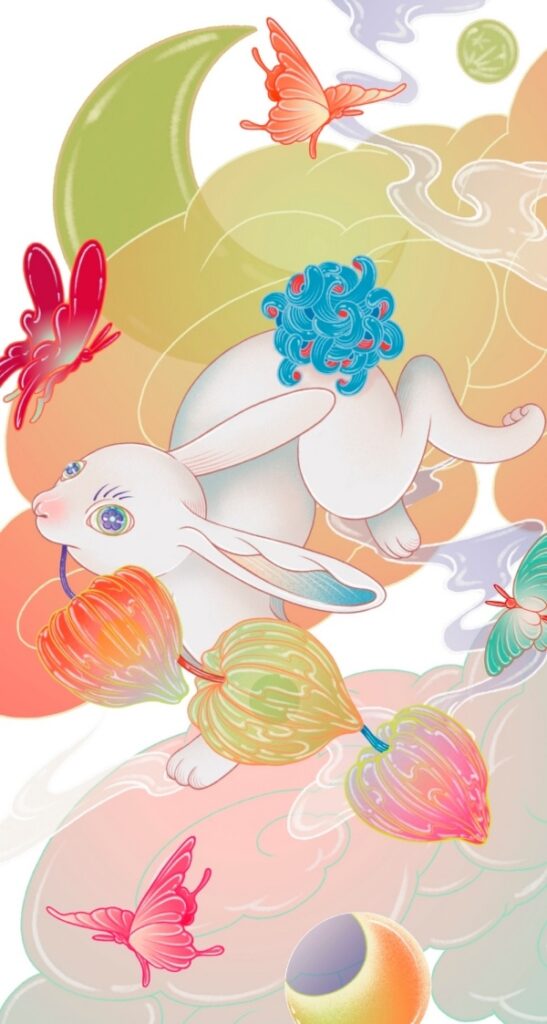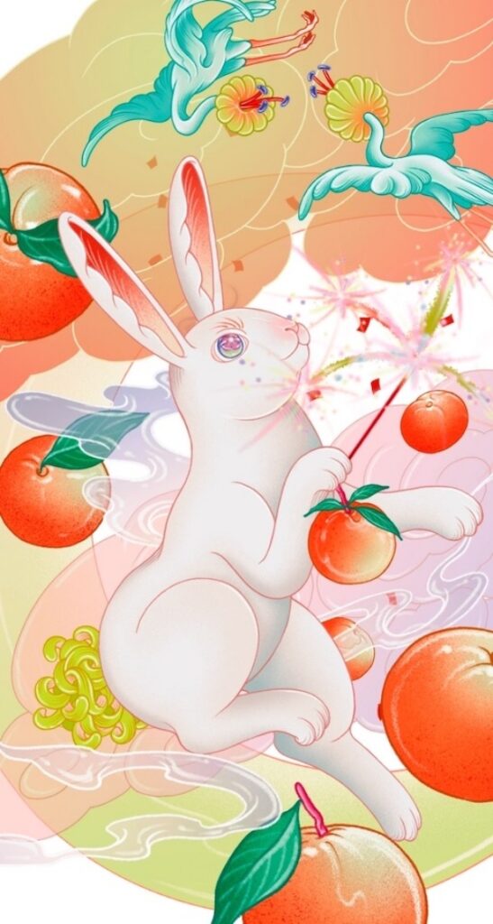 แนน–จิดาภา อธิบายถึงโปรเจ็กต์ซึ่งใช้เทคนิคผสมระหว่างงาน Traditional และ Digital รวมถึงการเพนต์ด้วยสีอะครีลิคบนแคนวาสในครั้งนี้ว่า “แนนอยากให้สีสันออกมาโทนสว่างและสดใส โดยใช้โทนสีส้มเป็นหลักค่ะ เพราะถึงแม้เหล่ากระต่ายจะเดินทางลงมาพร้อมกับดวงจันทร์ในยามค่ำคืน แต่ก็อยากให้เป็นค่ำคืนที่มีบรรยากาศสดใสและอบอุ่นด้วยคำอวยพรจากเหล่ากระต่ายและดวงจันทร์ ซึ่งนำพาความสว่างไสว ความสดชื่น และความมีชีวิตชีวามาสู่วันตรุษจีนปีนี้ค่ะ”