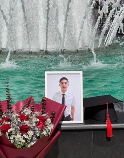 โดยโพสต์นี้มีข้อความว่า “หนุ่มน้อยนักบินของครอบครัว คงถูกลิขิตมาแล้วว่าฟรอง คงต้องเป็นนักบินบนโน้น พักผ่อนให้สบาย ในอ้อมแขนพระเจ้านะครับ ขอบคุณเพื่อน ๆ ที่ทำหน้าที่รับปริญญาให้ฟรองในวันนี้จ้ะ”