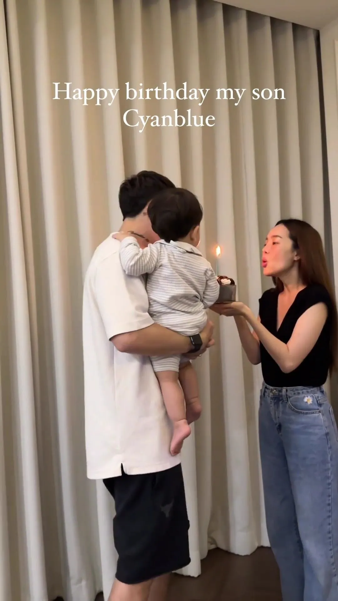 โดย กวินท์ แชร์โมเมนต์สุดประทับใจและช่วงเวลาพิเศษพร้อมแคปชั่นว่า “Happy birthday my son Cyanblue” ท่ามกลางบรรยากาศการฉลองที่เป็นไปอย่างเรียบง่าย แต่อบอวลไปด้วยความสุข ความอบอุ่น และความรัก และด้าน “ปุ้มปุ้ย” ก็โพสต์ภาพละข้อความอวยพรวันเกิด ซึ่งมีข้อความว่า “HBD หนุ่มน้อย วันนี้เมื่อปีที่แล้วเราได้เจอกัน เป็น 1 ปีที่ดีที่สุดสำหรับแม่ เวลาของความสุขผ่านไปอย่างรวดเร็ว ครบ 1 ขวบแล้ว แม่ขอให้ไซอัลบลู แข็งแรง สดใส สนุกกับการเรียนรู้สิ่งใหม่ ไปด้วยกันนะ รัก”