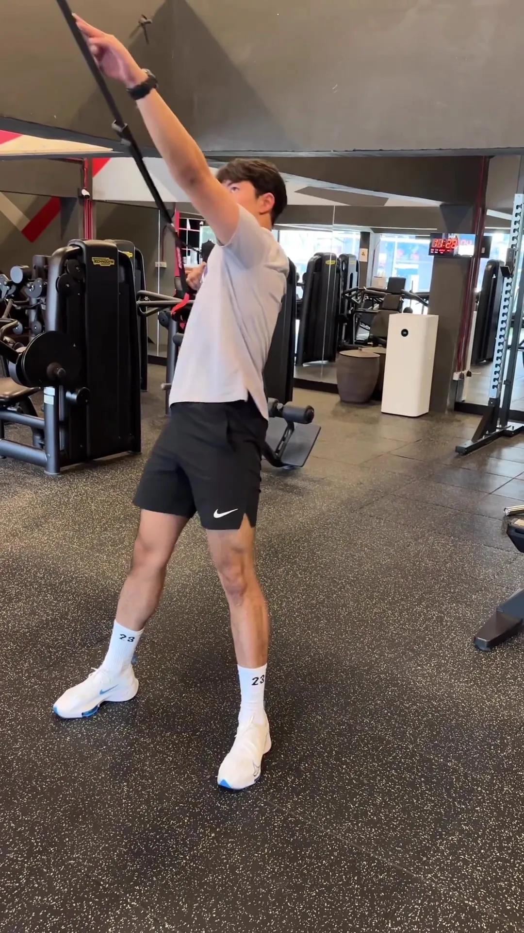 ล่าสุดปล่อยคลิปโชว์ท่ายากในการออกกำลังกาย พร้อมแคปชั่น “Step Up” และจุดพีคคือเหล่าคอหวย เหลือบไปเห็นเลขที่ถุงเท้าของ เป็นเลข 23 จะเป็นยังไงก็เอาไปลุ้นกันนะค๊าาาา