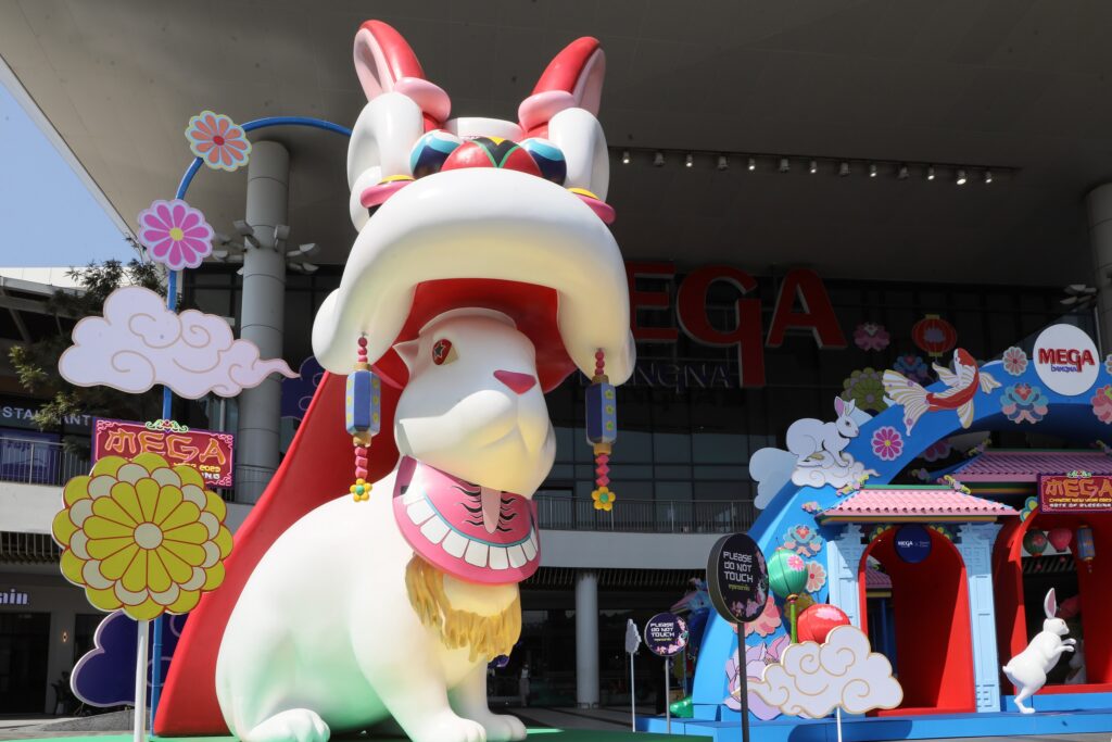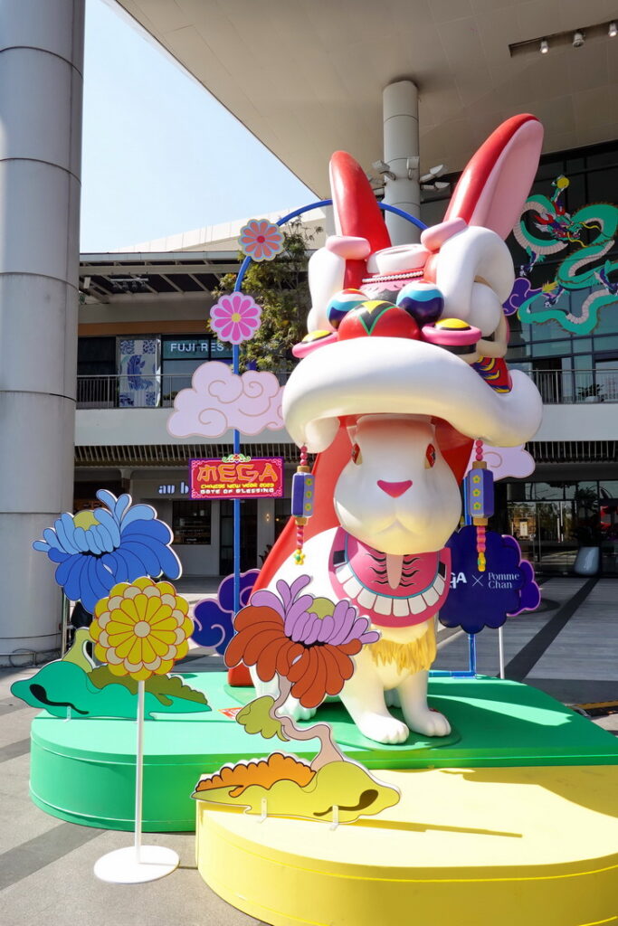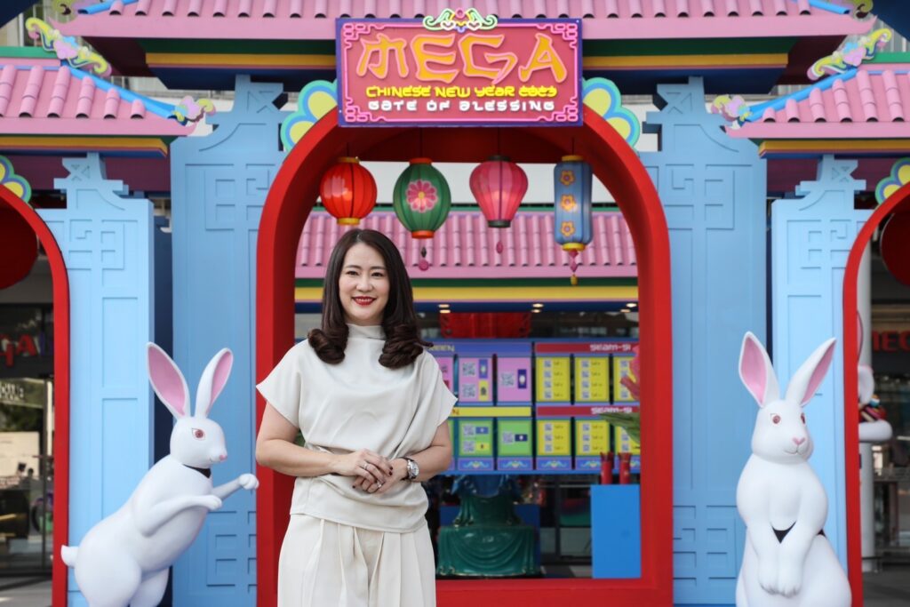 พลินี คงชาญศิริ ประธานเจ้าหน้าที่บริหาร ศูนย์การค้าเมกาบางนา กล่าวว่า “เพื่อร่วมฉลองเทศกาลตรุษจีนปี 2566 เมกาบางนา ได้จัดงาน MEGA CHINESE NEW YEAR 2033 (เมกา ไชนีส นิวเยียร์ 2023) ภายใต้คอนเซปต์ GATE OF BLESSING (เกต ออฟ เบลซซิ่ง) ซึ่งในครั้งนี้เราต้องการมอบประสบการณ์ใหม่ๆ ให้กับลูกค้า โดยความพิเศษ คือ การจับมือร่วมกันอย่างเต็มรูปแบบกับคุณปอม ชาน (Pomme Chan) ศิลปินหญิงนักวาดภาพฝีมือระดับโลก มาร่วมสร้างสรรค์งานอาร์ตด้วยการออกแบบลวดลายสุดเอ็กซ์คลูซีฟให้กับเมกาบางนา เพื่อร่วมสร้างสีสันแห่งการเฉลิมฉลอง โดยนำเสนอเรื่องราวของเทพกระต่ายขาวไป๋ทู่ชิ่งสวมหัวสิงโตเชิดลงมาจากดวงจันทร์ พร้อมเหล่ากระต่ายน้อยเทพรับใช้และขบวนมังกร เพื่อประทานพร ความโชคดี โชคลาภเงินทอง ความสุข ซึ่งเราได้นำผลงานมาต่อยอด ตั้งแต่การตกแต่งบรรยากาศของศูนย์การค้า การจัดทำของที่ระลึก เอ็กซ์คลูซีฟคอลเลกชันสำหรับลูกค้าที่มาช้อปที่เมกาบางนา อาทิ ซองอั่งเปา กระบอกน้ำ เซ็ตจานเซรามิก รวมถึงภาพหน้าจอสำหรับมือถือ และภาพหน้าจอคอมพิวเตอร์ ซึ่งการทำงานครั้งนี้ เป็นการตอกย้ำการเป็น Your Everyday Meeting Place ของ เมกาบางนา ที่นำเสนอความแปลกใหม่ โดยนำเอาศิลปะเข้ามาเป็นส่วนหนึ่งในการช้อปปิ้งและทำกิจกรรมต่าง ๆ ให้ตอบโจทย์กับทุกไลฟ์สไตล์ของลูกค้า ซึ่งในครั้งนี้คาดหวังว่าผลงานของคุณปอม ชาน จะเป็นจุดเริ่มต้นในการเติมสีสันและสร้างชีวิตชีวาให้กับลูกค้าของเมกาบางนา ให้มีความสุข ความสมหวังตลอดปี 2566“