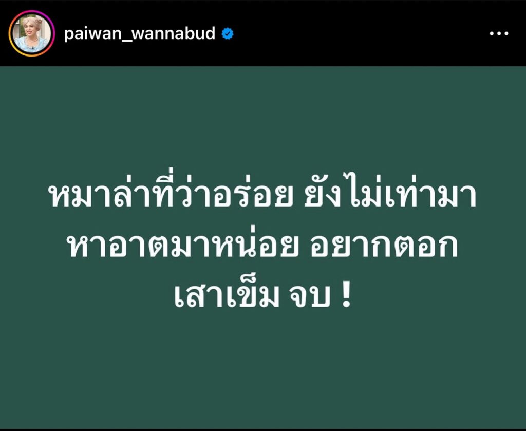 มันก็ชอบแกว่งปากหาเสี้ยนอย่างนี้ไง เพราะปากอย่างนี้ไง ทำตัวอย่างนี้ไง เขียนภาษาไทยก็ผิด ก่อนที่มันจะไปปกป้องศาสนาเขียนภาษาไทยให้มันถูกก่อน สบงมันยังเขียนไม่ถูก มันจะไปปกป้องพระอะไร มันไม่รู้พระไหนดี พระไหนเลว แล้วมีหน้าบอกจะปกป้องศาสนา มันเสียดสีหนูว่าหนูเป็นกะเทย แต่มันไม่รู้ว่าพระบางรูปที่มันไปถือหางเป็นกะเทย หนูงงกับมัน