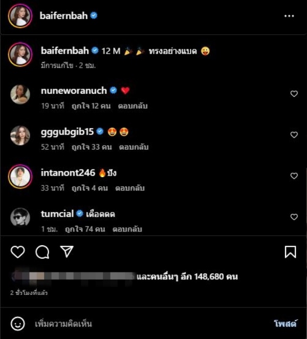 ล่าสุดทำเอาแฟน ๆ แตกตื่นกันทั้งไอจี เมื่อหนุ่มนายได้โพสต์ภาพตัวเอง พร้อมแคปชั่นว่า “ทรงอย่างเเบด” ขณะที่สาวใบเฟิร์นก็โพสต์ภาพในลุคสุดแซ่บ และใช้แคปชั่นเหมือนกันเป๊ะว่า “12 M ทรงอย่างแบด“