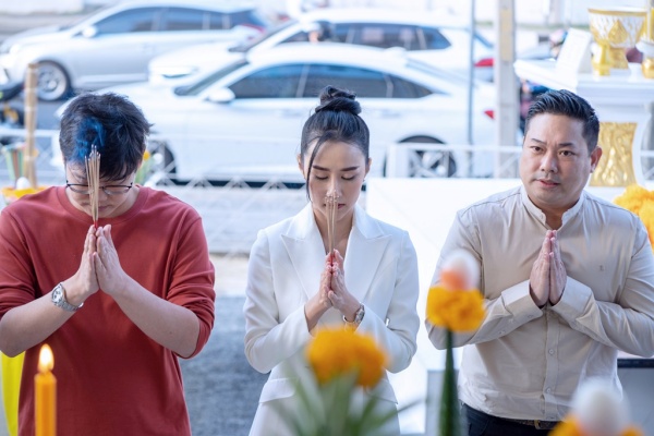 “น้ำแข็ง ชณัฐธิษา” นำทีมทำบุญบวงสรวง เปิดตึกใหม่