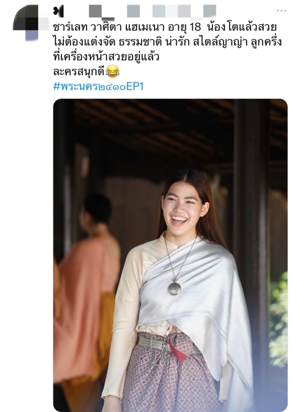 เวรี่กู้ด จนใจฟูมากเว่อร์ สำหรับ การเปิดตัว ละครพีเรียดตระการตา ฟอร์มใหญ่ “พระนคร๒๔๑o” ทาง ช่องวัน31 เรียกว่า เปิดตัวอีพีแรก ก็มาครบจัดเต็มทุกองค์ประกอบ โดยเฉพาะ เคมีของพระนางต่างขั้ว “ฌอห์ณ จินดาโชติ” และ “ชาร์เลท-วาศิตา แฮเมเนา” ที่เหมาใจแฟนละครไปชุดใหญ่ กับเคมีความน่ารัก ของ “คุณพระ” (ฌอห์ณ) โปลิศหนุ่ม มาดขรึม กับ “โนรี” (ชาร์เลท) แม่สื่อสายทะเล้น แสนซน