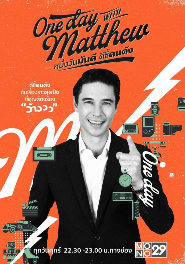 ติดตามสุดยอดพิธีกรระดับโลก “แมทธิว ดีน” ตระเวนตีซี้ซุปตาร์ผ่านกิจกรรมสุดมันมากมาย ในรายการ “วัน เดย์ วิท แมทธิว หนึ่งวันมันดี ตีซี้คนดัง (One Day With Matthew)” ทุกวันศุกร์ เวลา 22.30 น. ทางช่อง MONO29