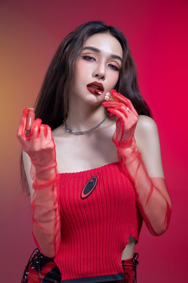 คอนเซ็ปท์ไอเดียหลักในการถ่ายเมคอัพแฟชั่นเซตนี้คือการพรีเซ็นต์แบรนด์ Cathy Doll ตามสโลแกน “Just Play It แค่เล่นก็สวยแล้ว” สมกับเป็นแบรนด์ที่นำเทรนในการเอาไอเดียสนุกๆ มาแต่งแต้มสีสันอยู่เสมอ โดยจุดเด่นของลุคนี้อยู่ที่การเขียนตาแบบ Graphic Eyeliner เพิ่มลูกเล่นให้ดวงตาดูมีสเน่ห์ และ เซ็กซี่มากขึ้น เติมปากด้วยลิปแมทท์สีแดงเข้ม ที่ทาไล่สีปากแบบออมเบรเบลนไปกับสีน้ำตาลอมส้ม ช่วยทำให้ลุคออกมาเป็นวาเลนไทน์ที่ดูร้อนแรง