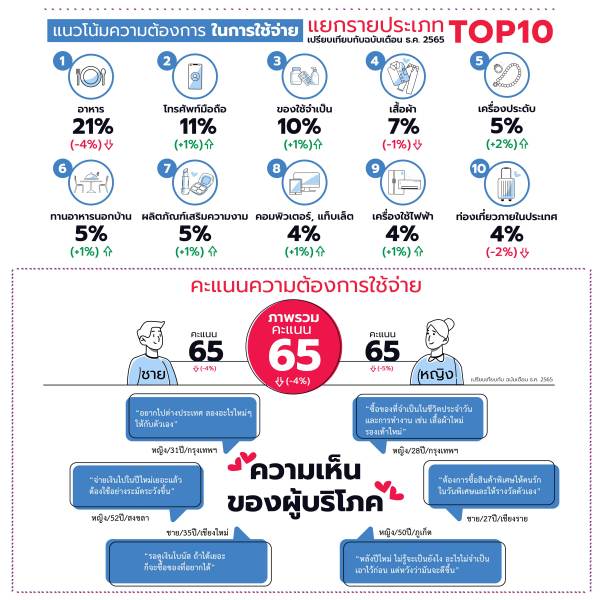 - แนวโน้มในการใช้จ่ายลดลงถึง -4% เมื่อเทียบกับผลสำรวจเดือนธันวาคม 2565