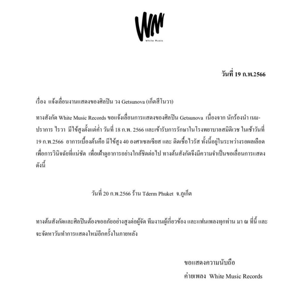 Music “เนม getsunova” เลื่อนการแสดงด่วน! Bentleyyapa 19/02/2023 โดยทางค่ายแจ้งว่า… Cr_ig: getsunova About Author Bentleyyapa See author's posts Post navigation Previous: อื้อหือออ! “พั้นช์ วรกาญจน์” เสิร์ฟผิวออร่าท่ามกลางหาดทราย Next: เปิดภาพแรกงานเช้า “อนันดา-ณิชชา” เข้าพิธีมงคลสมรสเรียบร้อยแล้ววันนี้! More Stories Editor's Picks Music F.HERO รีเมกเพลงอมตะ ‘ใจรัก’ สู่ ‘เมื่อดวงใจมีรัก’ สะท้อนความรักที่ซับซ้อน ดึง JANE YEH และ Z9 ถ่ายทอดความรักยุคใหม่ที่เชื่อมสองเจเนอเรชันอย่างลงตัว Wichai S 02/02/2026 Music “BNK48 & TSH48” เปิดตัว “Sky Lantern Wish” ซิงเกิลพิเศษร่วมกับไอดอลจีน Wichai S 27/01/2026 Music มันส์สุดเหวี่ยง ‘PROXIE’ ทำเวทีเดือด จัดเต็มคอนเสิร์ตใหญ่ PEPSI Presents PROXIE The 3rd Concert ‘PROXIMA-B’ Wichai S 27/01/2026