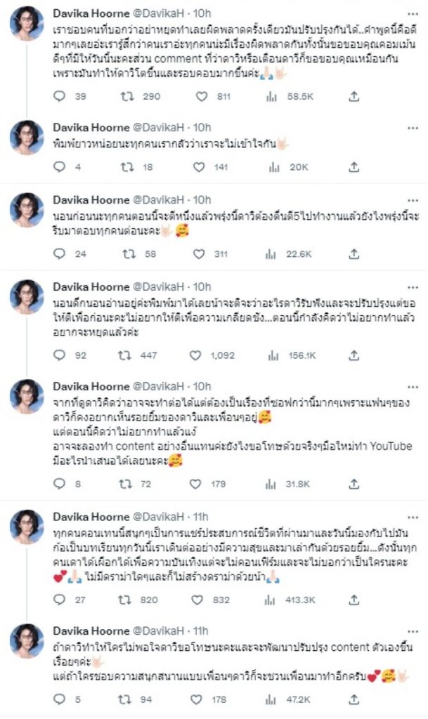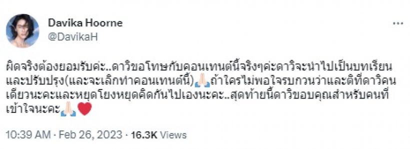 แต่ก็ไม่วายที่จะเกิดดราม่าตามมาอย่างหนักกับคอนเทนต์ เพราะมีบางกลุ่มงงว่า สาวใหม่ ไม่ใช่คนพูดทำไมดราม่ามาลงที่ สาวใหม่ ทำให้ สาวใหม่ ออกมาทวิต @DavikaH รัว ๆว่า…