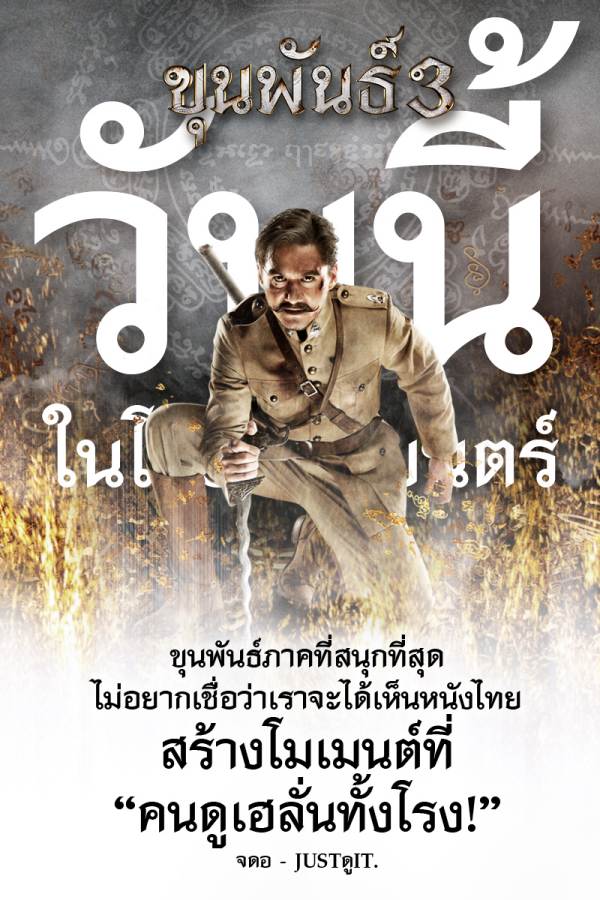 ร่วมปิดไตรภาคตำนานมือปราบคงกระพันใน “ขุนพันธ์ 3” ระเบิดความมันส์เดือดระทึก อัดแน่นความสนุกสุดเซอร์ไพรส์ตลอดกว่าสองชั่วโมงครึ่ง ดูให้จบเอนด์เครดิต พร้อมเฮลั่นโรงได้แล้ววันนี้ ในโรงภาพยนตร์ทั่วประเทศ