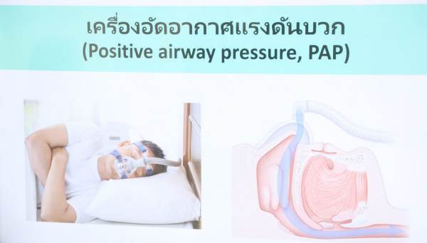 ศ.นพ.ณัฐพงษ์ อธิบายต่อว่า “นอกจากนี้ เรามีการนำเทคโนโลยีทางการแพทย์ที่เรียกว่า ‘เครื่องอัดอากาศแรงดันบวกชนิดต่อเนื่อง หรือเครื่อง CPAP: Continuous Positive Airway Pressure’ มาช่วยในการรักษาผู้ที่มีปัญหาเรื่องการนอน ซึ่งเป็นการรักษาที่นิยมและได้ผลดีวิธีหนึ่ง เหมาะสำหรับผู้ป่วยที่มีการอุดกั้นของทางเดินหายใจส่วนบนขณะหลับทุกระดับ ไม่ว่าจะเป็นผู้ป่วยที่มีปัญหานอนกรนธรรมดา หรือมีภาวะหยุดหายใจขณะนอนหลับ ซึ่งมีความรุนแรงตั้งแต่ระดับน้อยถึงรุนแรง