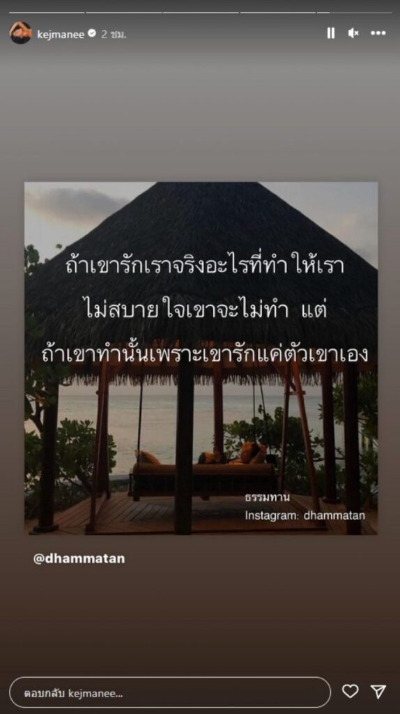 ล่าสุด แม่ปิ่น เคลื่อนไหวผ่านไอจีสตอรี่อีกแล้ว!! โดยโพสต์นี้เป็นคำคมที่มีข้อความว่า “ถ้าเขารักเราจริงอะไรที่ทำให้เราไม่สบายใจเขาจะไม่ทำ แต่ถ้าเขาทำนั้นเพราะเขารักแค่ตัวเขาเอง”