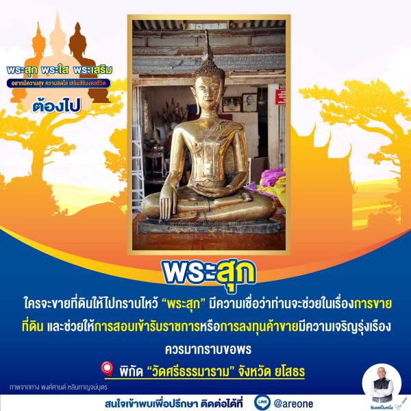 ใครจะขายที่ดินให้ไปกราบไหว้ “พระสุก” มีความเชื่อว่าท่านจะช่วยในเรื่องการขายที่ดิน และช่วยให้การสอบเข้ารับราชการหรือการลงทุนค้าขายมีความเจริญรุ่งเรือง ควรมากราบขอพร