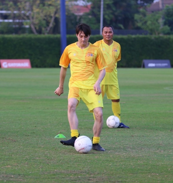 ทางด้าน “เก้า นพเก้า” ลูกทีมตัวแทนฝั่งสีม่วง ก็พูดถึงช่วงซ้อมว่า “เหนื่อยกว่าที่คิดครับ เหนื่อยมากไม่ได้เตะบอลแบบนี้มาประมาณ 6-7 ปีได้แล้ว ค่อนข้างเหนื่อยเอาเรื่องเลย วันจริงไม่เป็นห่วงนะครับ เพราะน่าจะได้ลงสนามอยู่แค่ประมาณ 2 นาที(หัวเราะ) อยากให้แฟน ๆ ทุกคนมาดูกันเยอะ ๆ เพราะว่าทุกคนในทีมสีเหลืองทุกคนตั้งใจซ้อมมาก ทุกคนซ้อมเพื่อให้แฟน ๆ ได้มาเอนจอยกัน ก็อยากให้ทุกคนมาเชียร์กันเยอะ ๆ ครับ มันจะเป็นการเพิ่มบรรยากาศ แล้วก็จะทำให้พวกเราเล่นบอลกันสนุกมากขึ้น ผมเชื่ออย่างนั้น”