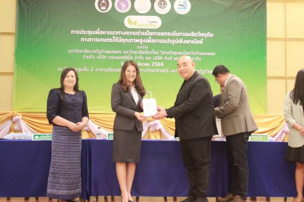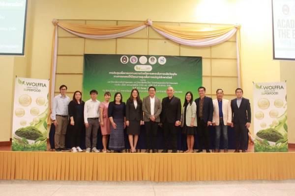 ดังนั้นในการนี้ ทางมหาวิทยาลัยจึงได้ วิจัยคุณภาพของผำ ซึ่งเป็นพืชน้ำที่มีคุณค่าทางอาหารและมีโปรตีนที่ดีต่อสุขภาพของมนุษย์ประกอบกับเป็นพืชที่ปลูกง่ายและเหมาะกับธรรมชาติของประเทศไทย ดังนั้นในวันนี้มีหน่วยงานส่วนราชการที่เกี่ยวข้อง พร้อมทั้ง สถาบันการเงินคือ ธกส.ประกอบกับมีเอกชน ที่มีความพร้อมทางด้านการแปรรูป สู่เชิงธุรกิจ มาร่วมผลักดันผลการวิจัย ให้นำไปสู่การปฏิบัติในภาคการเกษตรผลิตและจำหน่ายได้จริง