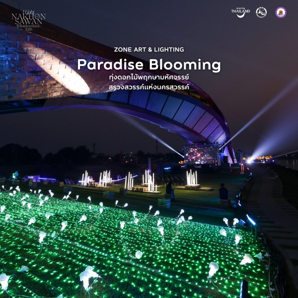 โซนจัดแสดงแสงสีที่โดดเด่นด้วยไฟโทนสีเขียวทอดยาวกว่า 26 เมตร เพื่อเนรมิตให้กลายทุ่งดอกไม้พฤกษาสุดมหัศจรรย์ ท่ามกลางดินแดนสรวงสวรรค์แห่งนครสวรรค์ แลนด์มาร์กเหนือจินตนาการที่จะสร้างความตื่นตาตื่นใจในทันทีที่ได้เห็น
