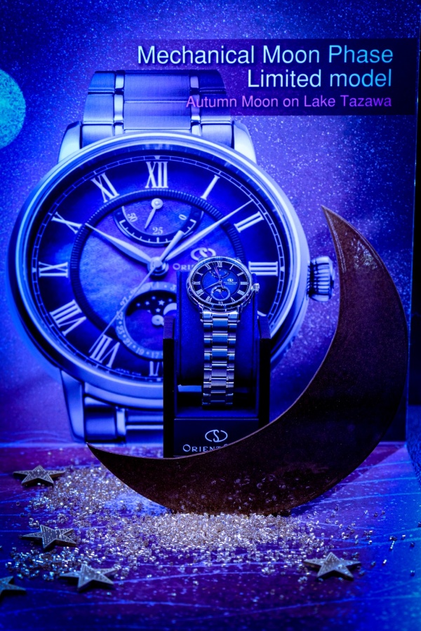 อีกหนึ่งนาฬิกาเรือนที่เปิดตัวได้โดดเด่น Orient Star Mechanical Moon Phase Limited Edition (Ref.RE-AY0116A) ภายใต้แนวคิดและสร้างสรรค์จาก “พระจันทร์ในฤดูใบไม้ร่วงที่ทะเลสาบทาซาวะ” ทะเลสาบทาซาวะตั้งอยู่ในจังหวัดอาคิตะ ซึ่งได้รับการขึ้นทะเบียนเป็น 1 ใน 100 ทะเลสาบที่สวยงามและเป็นทะเลสาบที่ลึกที่สุดในญี่ปุ่นโดยมีระดับความลึกถึง 423 เมตร ตัวเรือนมีความโดดเด่นและน่าหลงใหลด้วยดีไซน์การไล่เฉดสีเทาบนหน้าปัดเปลือกหอยมุกที่สีของหน้าปัดนั้นจะเปลี่ยนไปตามมุมมองและแสงที่ตกกระทบเฉกเช่นเดียวกันกับสีของพื้นผิวของทะเลสาบทาซาวะที่จะเปลี่ยนไปตามภูมิอากาศ นาฬิกามีความพิเศษที่ตรงฟังก์ชั่นแสดงข้างขึ้นข้างแรมด้วยดวงจันทร์สีเงินที่ลอยอยู่บนท้องฟ้ายามค่ำคืน ตัวเรือนมีความกว้าง 41.0 มิลลิเมตรและมีความหนา 13.8 มิลลิเมตร กระจกคริสตัลแซฟไฟร์ทรงโค้งเคลือบสารกันสะท้อน SAR ช่วยให้อ่านค่าเวลาได้อย่างชัดเจน