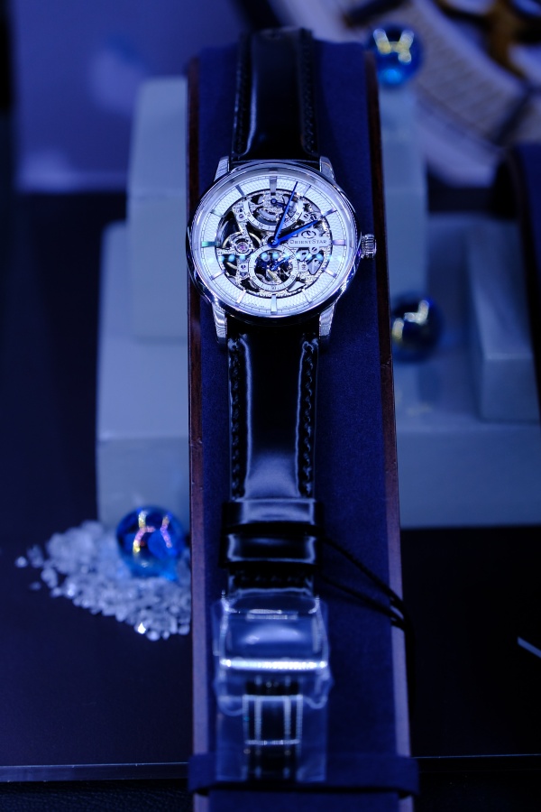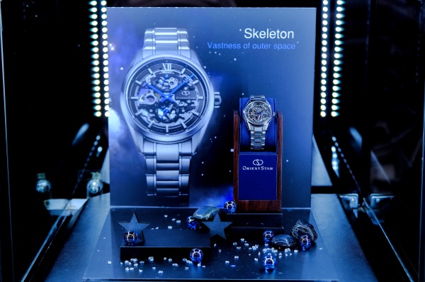 ภายในงานได้จัดการเปิดตัวนาฬิกาพร้อมรูปแบบในคอนเซป Eternal Sky เพราะทุกการเปลี่ยนแปลงคือเสน่ห์ของกาลเวลา รูปแบบนาฬิกาจากดีไซน์ผสานกลไก ที่เปลี่ยนสุนทรียภาพของธรรมชาติสู่การสวมใส่ ทั้ง 3 รุ่น คือ “โอเรียน สตาร์” (Orient Star) เรือนเวลารุ่นใหม่ในสไตล์หน้าปัดแบบ Full Skeleton (Ref.RE-AZ0101N) ภายใต้แนวความคิด “จักรวาลอันกว้างใหญ่” ที่งานออกแบบสะท้อนภาพของห้วงอวกาศและจิตวิญญาณแห่งการสำรวจ ตัวเรือนนาฬิกาสัมผัสได้ถึงความพรีเมียมทั้งในส่วนของวัสดุและกลไกภายในที่มีความโดดเด่นจากการใช้จักรเหล็ก (Escape Wheel) ที่ผลิตจากซิลิเซียมด้วยเทคโนโลยี MEMS (Micro-Electro_Mechanical Systems) ซึ่งเป็นเทคโนโลยีที่คิดค้นโดยบริษัทเอปสัน (EPSON) ซึ่งเป็นบริษัทแม่ของแบรนด์โอเรียนท์ สตาร์ อันมีส่วนช่วยให้ชิ้นส่วนที่ได้มีน้ำหนักเบาและมีความเที่ยงตรงสูงโดยชิ้นส่วนนี้ได้รับการออกแบบให้เป็นสีน้ำเงินเพื่อสื่อถึงกาแล็กซี่ทางช้างเผือกที่ตัดกับสีเทาของฐานเครื่องและส่วนอื่นๆ เปรียบเสมือนห้วงจักรวาลอันกว้างใหญ่
