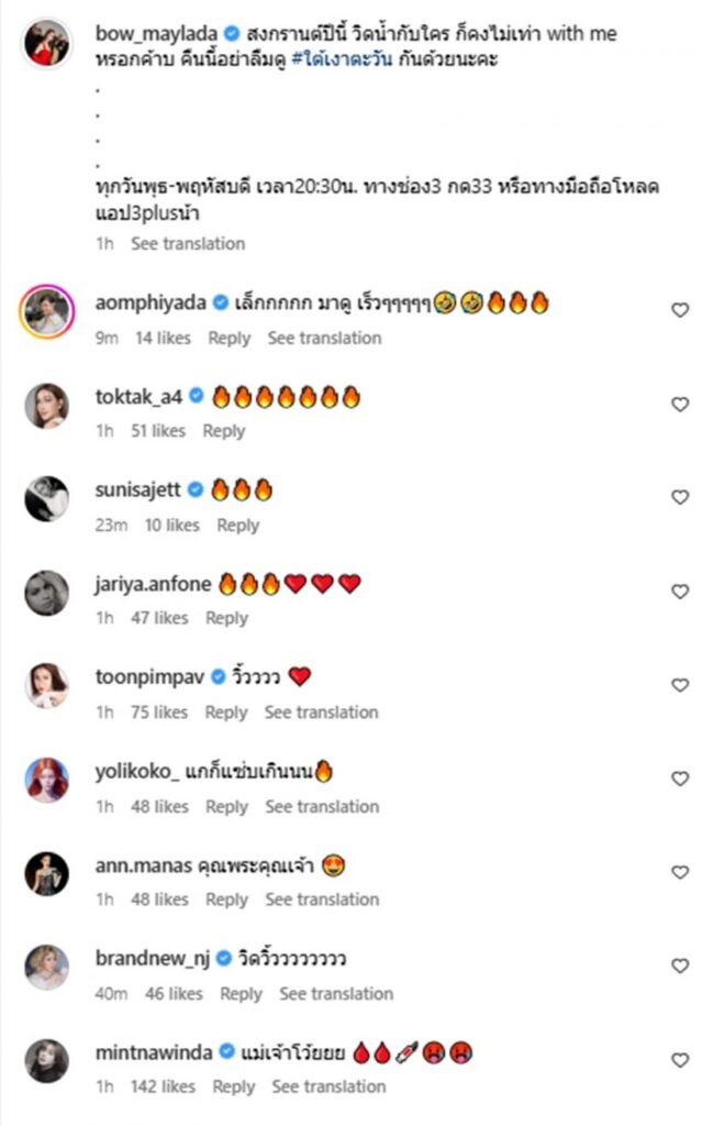 ล่าสุด โบว์ เมลดา ทำไอจีต้องไฟลุกมากกกกก เมื่อกลางดึกที่ผ่านมา โดย สาวโบว์ โพสต์ภาพสุดแซ่บในชุดบิกินี่สีชมพูสดใสพร้อมแคปชั่นว่า “สงกรานต์ปีนี้ วิดน้ำกับใคร ก็คงไม่เท่า with me หรอกค้าบ” งานนี้ทำเอา หนุ่มอาเล็ก รีบเข้ามาเมนต์อย่างไว อิอิ