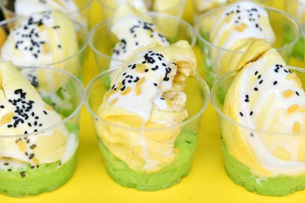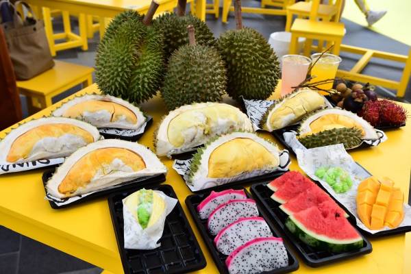 ไลน์บุฟเฟต์ผลไม้ -เงาะ-ลิ้นจี่-มังคุด-แตงโม-แก้วมังกร-มะม่วงน้ำดอกไม้ ไลน์บุฟเฟต์ขนม มี ไอติมทุเรียน โคนเวฟเฟอร์-ข้าวเหนียวทุเรียน-ข้าวเหนียวมะม่วง (บางวัน)-แซนวิสทุเรียน ไลน์บุฟเฟต์น้ำ มี น้ำลิ้นจี่-น้ำมะม่วง-น้ำเปล่า